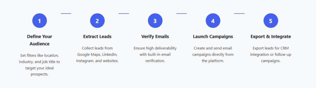 LetsExtract can extract leads from Google Maps, LinkedIn, Instagram, company websites, and more.